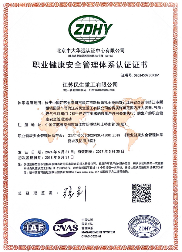ISO45001職業(yè)健康安全管理體系認(rèn)證證書(shū)