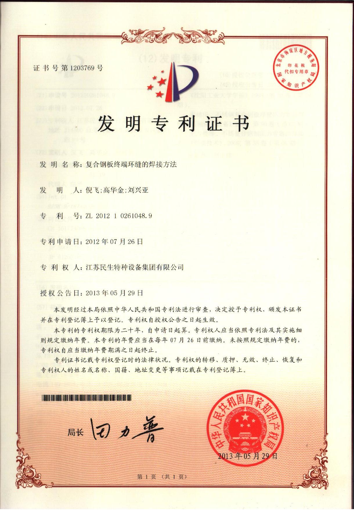 復(fù)合鋼板終端環(huán)縫的焊接方法